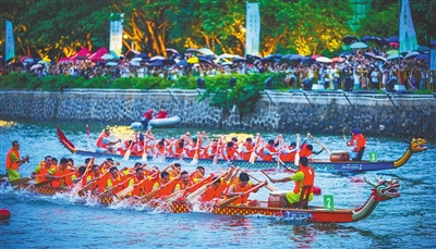 时间过去了500多年,海南人“龙舟击浪”的热情丝毫没有减退。如今,在海口、三亚、儋州、万宁等地,每年都会举办龙舟赛。今年6月10日,在海口海甸河举办的“海口杯”端午龙舟邀请赛,吸引来自全省各市县的12支队伍参赛,数万观众在河两岸观战,场面热闹非凡。