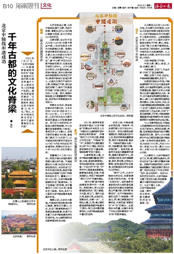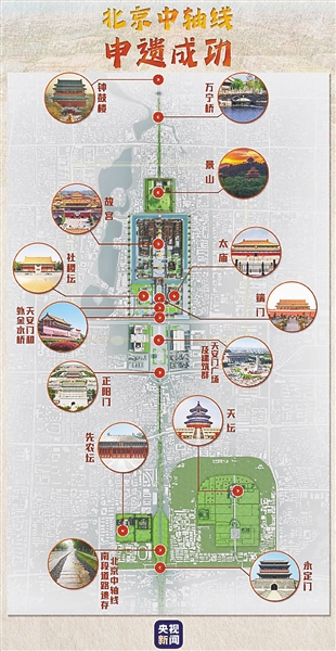 ■ 金松2024年7月27日,“北京中轴线——中国理想都城秩序的杰作”在联合国教科文组织第46届世界遗产大会上被成功列入《世界遗产名录》。建筑学家梁思成曾说:“北京独有的壮美秩序,就由这条中轴的建立而产生。”那么,北京中轴线壮美在何处?其中又蕴含着哪些文化内涵?