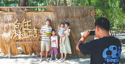 近日,在昌江黎族自治县海尾镇沙渔塘社区,游客在海滩游玩“打卡”。暑假期间,作为《向往的生活》节目拍摄地,昌江沙渔塘社区迎来众多省内外游客。海南日报全媒体记者 陈元才 通讯员 杨耀科 摄