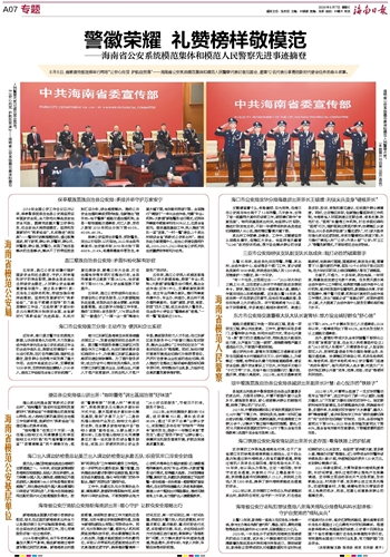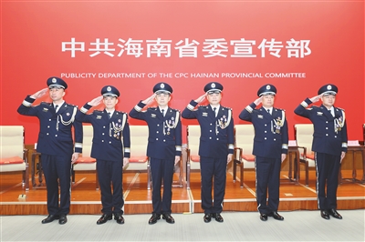 8月6日,省委宣传部连续举行两场“公安心向党 护航自贸港”——海南省公安系统模范集体和模范人民警察代表记者见面会,邀请12名代表分享勇担新时代使命任务的奋斗故事。海南省模范公安局
