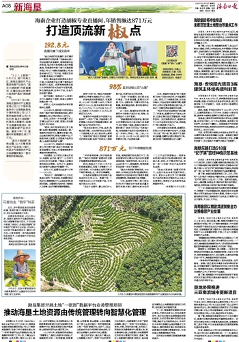 ■ 海南日报全媒体记者 邓钰“3、2、1,上链接!”8月8日,海口市美兰区,海南农垦热作产业集团电商产业园内,“昌农大坡胡椒”抖音直播间,主播向观众热情地介绍各款“昌农”牌胡椒产品。