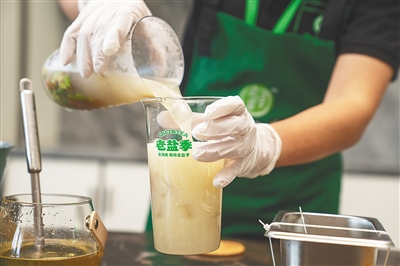 “老盐季”联合创始人、产品研发人员石微表示,一杯老盐黄皮想要出圈,必须在选果、配料、制作、配比等每个环节精益求精。