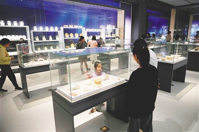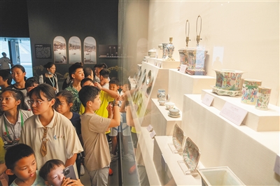 在中国(海南)南海博物馆,中小学生欣赏馆藏瓷器。海南日报全媒体记者 李天平 摄
