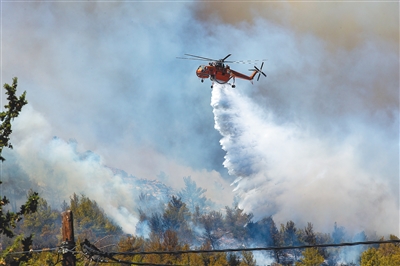 8月12日,消防直升机在希腊首都雅典附近的迪奥内进行灭火作业。新华社发
