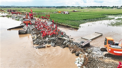 当日,记者从内蒙古自治区赤峰市防汛抗旱指挥部获悉,截至8月14日13时,内蒙古赤峰市松山区太平地镇八台营子村老哈河左岸段堤防溃口已合龙。新华社发