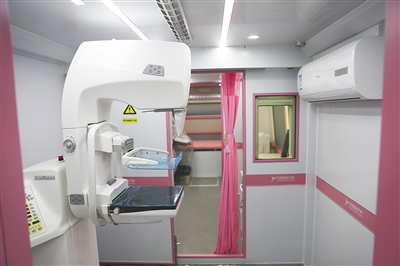 “在所有医疗车的设计中,我们主要以医护及患者较为熟悉的蓝白配色为主,但这辆妇科两癌筛查车,我们整体设计为粉白配色,更凸显温馨效果。”冯昌勇说,车内配备两台进口医疗设备,包括一台乳腺检查机、一台宫颈检查机,可以有效筛查乳腺癌和宫颈癌。