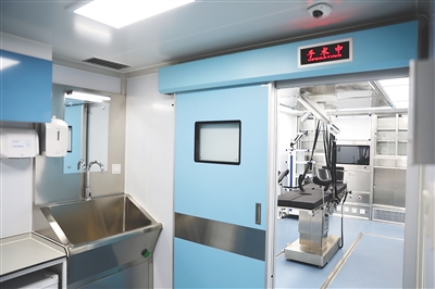 “考虑到手术空间的需要,我们专门设计了这样一个可以拓展的手术空间,这样手术室宽度就可达到近四米,操作空间更加充裕。”冯昌勇说,同时车厢地面设置滑轨,行车时,可拓展空间可收缩,使车辆外侧宽窄一致,确保行车安全。