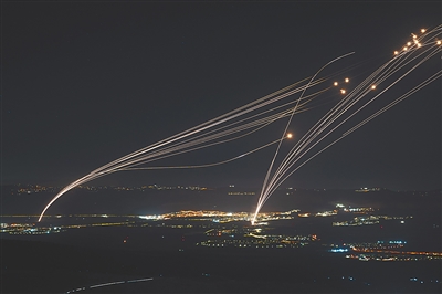 8月4日,以色列“铁穹”防空系统拦截射向以色列北部加利利地区的火箭弹。新华社/美联