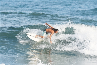 冲浪爱好者在海南陵水清水湾冲浪。 新华社发