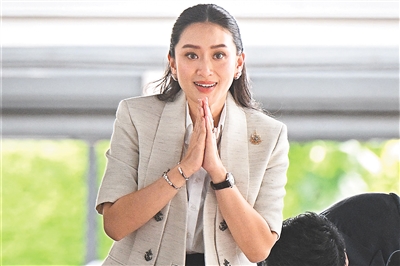 8月16日,佩通坦·钦那瓦在泰国曼谷向媒体记者致意。新华社/法新