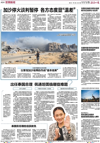 新华社北京8月17日电 加沙地带停火谈判15日在卡塔尔首都多哈重启,16日暂停,将于下周在埃及首都开罗恢复。针对本轮停火谈判,各方表态不一:巴勒斯坦伊斯兰抵抗运动(哈马斯)反对以色列提出的“新条款”;以色列则要求斡旋方向哈马斯施压、迫使其接受停火方案;美国则表达谨慎乐观态度。停火谈判斡旋方美国、卡塔尔和埃及16日发表联合声明说,当天,美国在之前方案要点的基础上提交了一份新方案。声明称,这一方案有助于弥合以色列与哈马斯之间的分歧,有利于推动双方在达成停火协议后迅速落实相关共识。