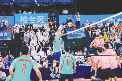 本报文城8月18日电(海南日报全媒体记者刘梦晓)“哔——”8月18日晚,2024年“九九杯”海南(文昌)乡镇排球联赛冠军之夜在文昌文城玉阳公园开赛。经过两个月的激烈角逐,万宁和乐镇龙舟小镇队和海口龙桥镇动漫战队会师决赛。经过一场精彩对决,龙桥队以3∶0战胜和乐队,举起冠军奖杯。场上,球员的挥臂与跳跃充满力量。场边,啦啦队齐声呐喊,鼓声阵阵,现场氛围热烈。
