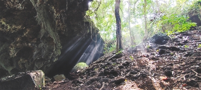 吕天朗发现海南帛菱蜡蝉的洞穴。