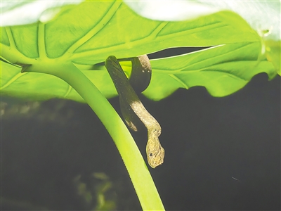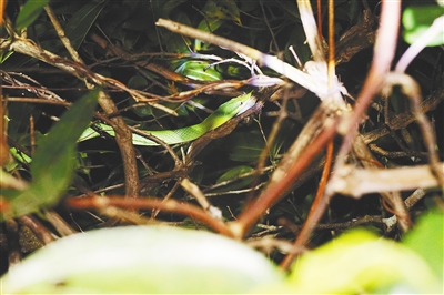 让侯德佳意想不到的是,刚被发现时,海南尖喙蛇还在路边盘桓,或许是听到了车响声,在他即将到达时小蛇就往灌木丛里钻。“当时心里直呼倒霉,但还是抱有一丝希望,顺着其他人的指引,在灌木丛中发现了它的身影。经过耐心等待,最终拍到了一张比较清晰的物种照片,这让我非常开心。”他说,这次经历既给自己的物种名录加了新成员,又对这片土地及土地上生活的动物有了进一步了解。