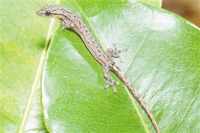 “因为前期调查过程中那个地方没有什么爬行类,加之前期调查中发现壁虎科的物种分布比较广,部分物种比如中国树蜥有在树干上发现的情况,所以会查看周边树干是否有壁虎、蜥蜴等爬行类动物,不料偶然在椰子树干上发现半叶趾虎。”侯德佳说,发现的时候那只半叶趾虎正趴在树干上一动不动,“可能是觅食或者休息,又或是出来活动活动筋骨。”