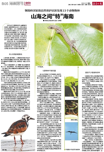 ■ 海南日报全媒体记者 刘梦晓当你站在文昌铜鼓岭的山巅眺望月亮湾时,郁郁葱葱的丛林中,或许也有生灵在仰望着你。近日,海南铜鼓岭国家级自然保护区管理处对外公布,在今年开展的动物资源调查工作,新发现了翻石鹬、橙头地鸫、海南尖喙蛇、哀鳞趾虎、半叶趾虎等13种动物物种,包括8种鸟类动物和5种爬行类动物,均为保护区首次记录,刷新了该保护区的物种名录。