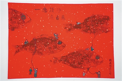 让海中精灵跃然纸上,此时的鱼拓画,不再是简单的见证,注视着一条鱼变成一幅画的奇迹;更多是一种表达,述说着人与自然和谐共生的希冀。
