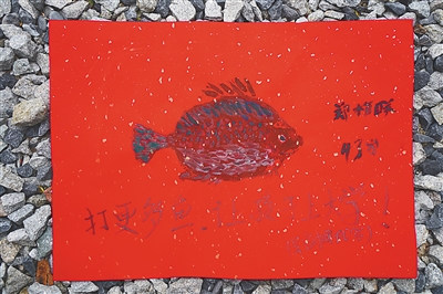 53岁的林六妹也是鱼拓画的参与者,她通过自己的作品写下了对海洋的朴实感悟:“这辈子打到过很多很多大鱼,我们不懂太多,只知道是国家保护的鱼类都会放生”。