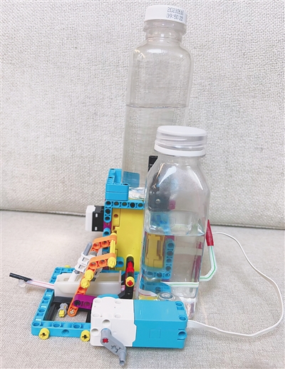 冯世锦研究制作的自动浇花水壶,是利用杠杆等科学原理拼装成的一个动力机械装置。他还运用电脑编程知识,让这个水壶能够定时定量浇水。翻开产品设计研究报告,可以看到他一步步升级优化自动浇花水壶的全过程:设计方案、准备材料、拼装、改造、测试、再改造、再测试……光是为了设置不同模式下的出水量,他就用了多个不同容量的试管反复测试。