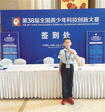 今年7月底,不满12岁的冯世锦凭借自己设计的“自动浇花水壶”在天津摘得第38届全国青少年科技创新大赛(以下简称第38届青科赛)一等奖、安恒杯专项奖“少年英才奖”三等奖。他也是本届赛事中海南代表队里唯一一位荣获金牌和专项奖的选手。