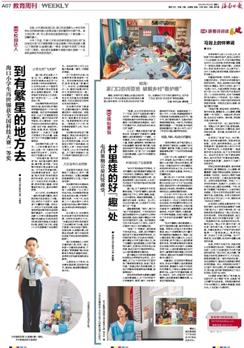 海口市滨海第九小学校长潘华莉介绍,该校一直以来都十分重视科技教育,不断通过“梦想课程”等以科技教育为特色的课程和活动,培养学生的创新思维和综合素养。