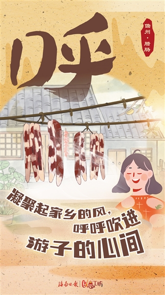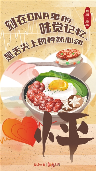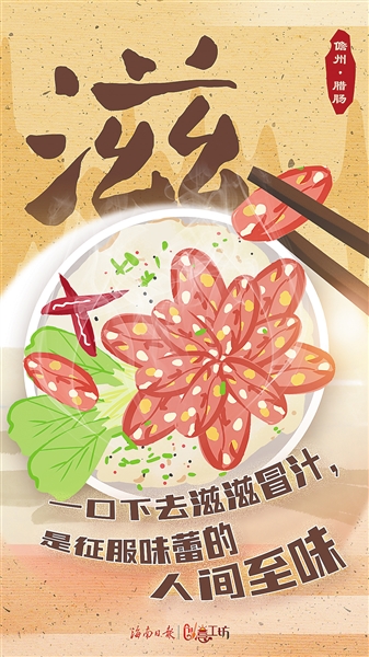 本报讯 (海南日报全媒体记者周钰)腊肠,是儋州人餐桌上必不可少的一道美食。海南日报新媒体特别策划推出创意海报《用听觉打开儋州腊肠》,通过滋、怦、呼、哇、嗝、咣等词,调动网友们的听觉系统,让人感受到风味独特的儋州腊肠,不仅是民俗文化的体现,更是关于年的记忆、家的味道。
