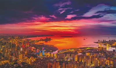 哲断拍过一张傍晚海口的照片:天边晚霞“烧”红了整片天空,城市里灯火辉煌,两种光亮相互辉映,足见海口自然与人文的和谐之美。他为这张照片写的配文是:“每一盏灯都值得去表现。”放大来看,万家灯火的细节依然清晰可见。