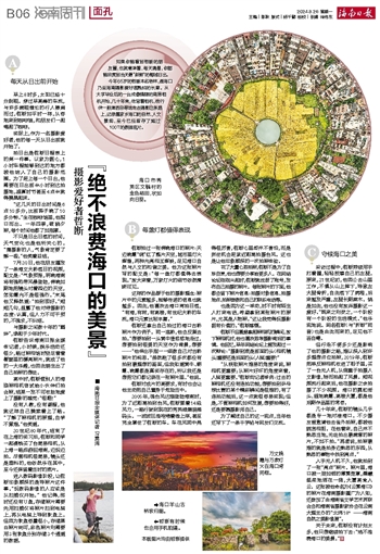 几十年来,哲断的镜头几乎都是专一地对准海口。不少摄友曾邀请他去省外拍照,都被他婉言相拒。在他看来,自己并不熟悉当地,无法拍出最满意的照片,不如不拍。“再者说,拍照最难的就是拍身边熟悉的东西,从熟悉的事物中找到亮点。”