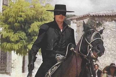 在1975年主演的动作电影《佐罗》中,阿兰·德隆塑造了一个蒙面义侠的经典形象。在电影中,他饰演的迭戈代替死去的好友,前往新阿拉贡担任总督。表面上,他胆小怕事,但在面对不公之时,便会化身为佐罗,一袭黑色装扮,手持长剑,腰间挂着鞭子,挥舞着“Z”字形的标志,除暴安良,行侠仗义,为公道和正义而战。佐罗的形象充满了冒险和刺激,曾点燃无数少年心中的英雄梦。