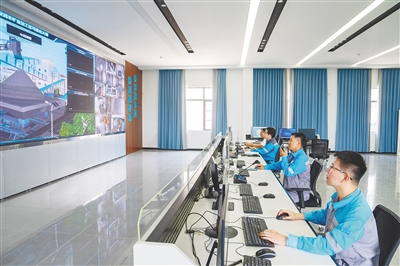 九定岭建筑用花岗岩骨料项目工作人员通过中央集控系统,实时监控矿山各类指标数据,远程操作自动化生产设备。