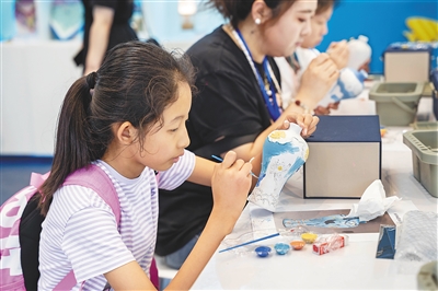 “博博会”期间,观众在中国(海南)南海博物馆展区体验手绘活动。(受访单位供图)