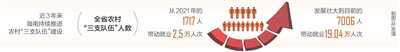 得益于近3年来海南省持续推进农村“三支队伍”建设,全省农村“三支队伍”人数从2021年的1717人、带动就业2.5万人次,发展壮大到目前的7006人、带动就业19.04万人次。举例来说,由于定安县劳务带头人叶民龙树起了榜样,他所在种植基地多名民工通过培训获得农机和无人机驾驶证,如今成为靠科技种田的新型农民。