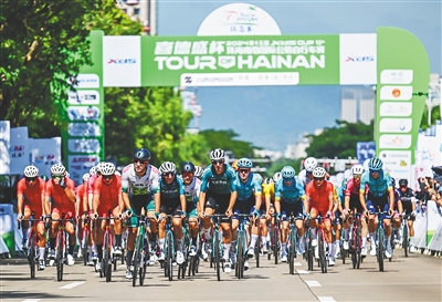8月27日,环岛赛在琼海开赛,参赛车手从起点出发。五指山1867洲际队供图