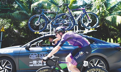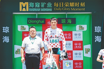 海南车队选手薛超华夺得“爬坡王”象征的圆点衫。车队供图