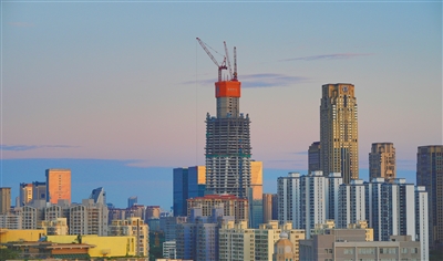 8月27日,远眺核心筒第40次顶升顺利完成的海南中心项目。目前,该项目的塔楼核心筒已施工至56层,外框已施工至48层,幕墙和泛光照明施工至21层,项目建设高度至243.4米,完成年度投资计划的69.86%。同时,该项目计划今年年底完成62层竖向结构施工,奋力冲刺2026年底竣工目标。海南日报全媒体记者 张茂 摄