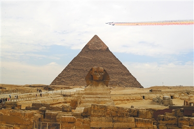 表演机编队飞越金字塔