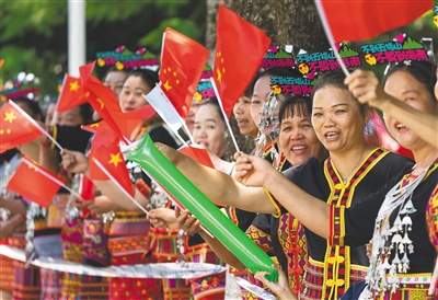 观赛的五指山群众在为车手呐喊助威。