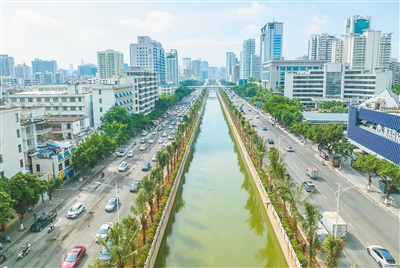 据悉,海口于2023年6月启动龙昆沟整治工程建设。项目设计起点为滨海立交桥下四孔涵,终点为龙兴路,全长约1公里,平均道路红线宽度73米。