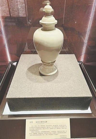 展览中展出的定窑白釉塔式罐(五代)。新华社记者 周润健 摄