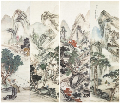 清代林丰年的《渔樵耕读图》(四条屏)。 厦门市博物馆藏