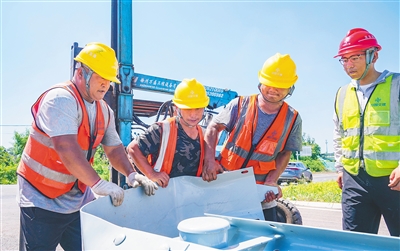 ⑤在G9813万洋高速王五互通立交项目施工现场,建设者在进行收尾工作。