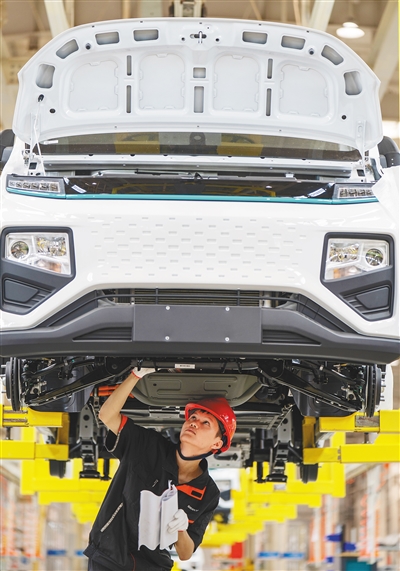 ④在海口国家高新区海南远程新能源商用车工厂,工人们在总装车间赶制订单。