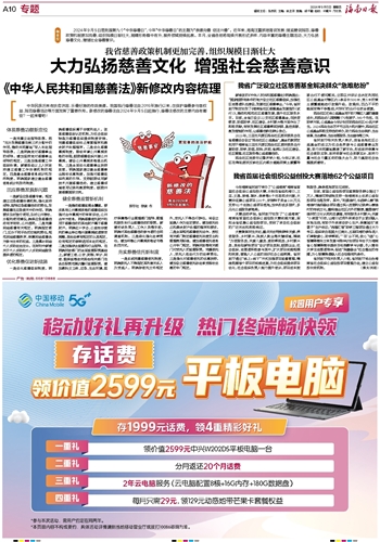 编者按2024年9月5日是我国第九个“中华慈善日”,今年“中华慈善日”的主题为“崇德向善 依法兴善”。近年来,海南注重抓培育促发展、强监管促规范,慈善政策机制更加完善,组织规模日渐壮大,捐赠形势稳中有升,服务领域持续拓展。本月,全省各地将陆续开展形式多样、内容丰富的慈善主题活动,大力弘扬慈善文化,增强社会慈善意识。