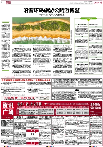 “在世界行走,为博鳌停留。”自海南环岛旅游公路通车后,博鳌作为海南东部的一个重要旅游目的地,博鳌段的环岛旅游公路以其美丽的海岸线、独特的景观和丰富的文化内涵成为新的旅游热点。