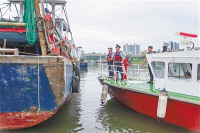 ① 9月4日,南方电网超高压公司海口分局电网工作人员在福山变电站开展台风前设备特训。 图/文 海南日报全媒体记者 张茂 通讯员 吴玉转② 9月5日,在琼海市潭门中心渔港,多部门开展联合巡查,劝说渔民转移到岸上住宿。海南日报全媒体记者 李天平 摄