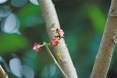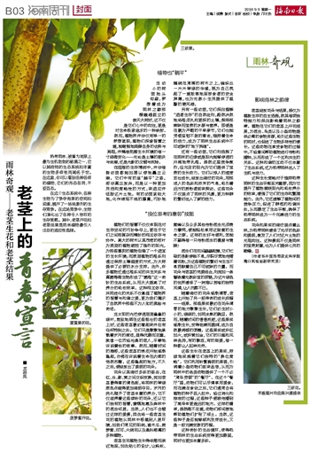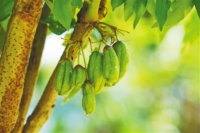 花朵以其绚烂多彩的姿态,在红、白、紫、黄之间交织变换,宛如老茎最得意的调色板,将雨林的翠绿底色点缀得更加绚丽夺目。岁月的洗礼赋予了老茎丰富的养分,它不仅滋养着这些缤纷的花朵,还以它们独有的智慧,慷慨地惠及森林中的昆虫邻居。当然,人们也不会错过这样的美景,因此将一些老茎生花的植物从雨林中移植到人居环境,如我们常见的阳桃、番木瓜、菠萝蜜、可可、火烧花以及桑科榕属的多种植物。