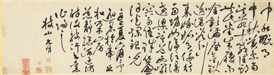 《中秋玩月帖》(“玩”繁体字为“翫”)是明代书法家、“吴中四才子”之一的祝允明感怀中秋时写下的草书作品。此帖与文徵明的《吴山览胜图》合卷,近年出现在某秋拍会上。祝允明此帖为七律诗,诗中“中秋美景当吴苑”“珠帘徐卷烂银光”充满了意趣,浪漫且超然,体现了作者烂漫天真、豪纵奔逸的性格特点。祝允明在此帖题款中提到,此卷乃是为慕静书旧作。据了解,慕静是祝允明的亲家,故此帖应为祝允明的用心之作,艺术水准很高。