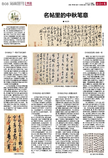 ■ 李玉萍中秋节是我国历史悠久的传统节日,早在唐代时就有关于中秋节的记载。宋人吴自牧在《梦粱录》中说:“八月十五日中秋节, 此日三秋恰半, 故谓之中秋。”古往今来,许多文人墨客在中秋之夜雅集宴饮、散步赏月、赋诗作画,创作了无数情趣盎然、感人肺腑的诗文和书画作品。今年的中秋节即将来临,让我们搜寻与中秋节相关的书法珍宝,欣赏书法里的中秋。