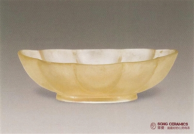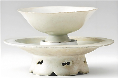 宋代青白釉葵口托杯。