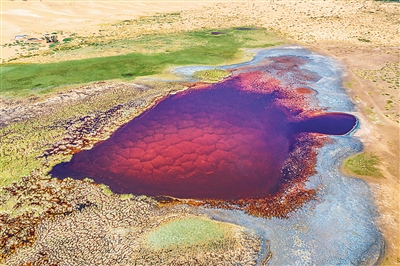 乌兰湖,也被称为“地球之心”,位于腾格里沙漠腹地,以其鲜红色的湖水和心形的外观而得名。乌兰湖四周被茂密的芦苇和柔软的沼泽所环绕。